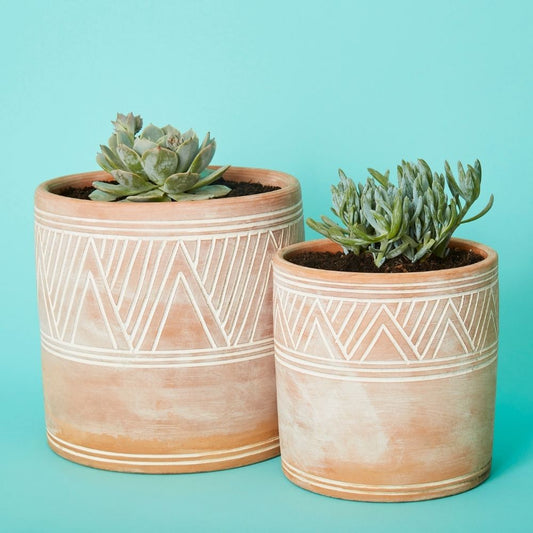 Bangladesh Small Rustic Striped Succulent Terracotta Pot
