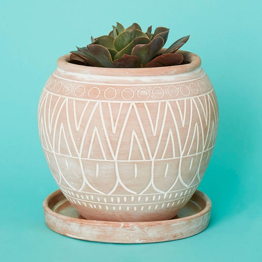 Bangladesh Small Rustic Terracotta Belly Pot with Saucer